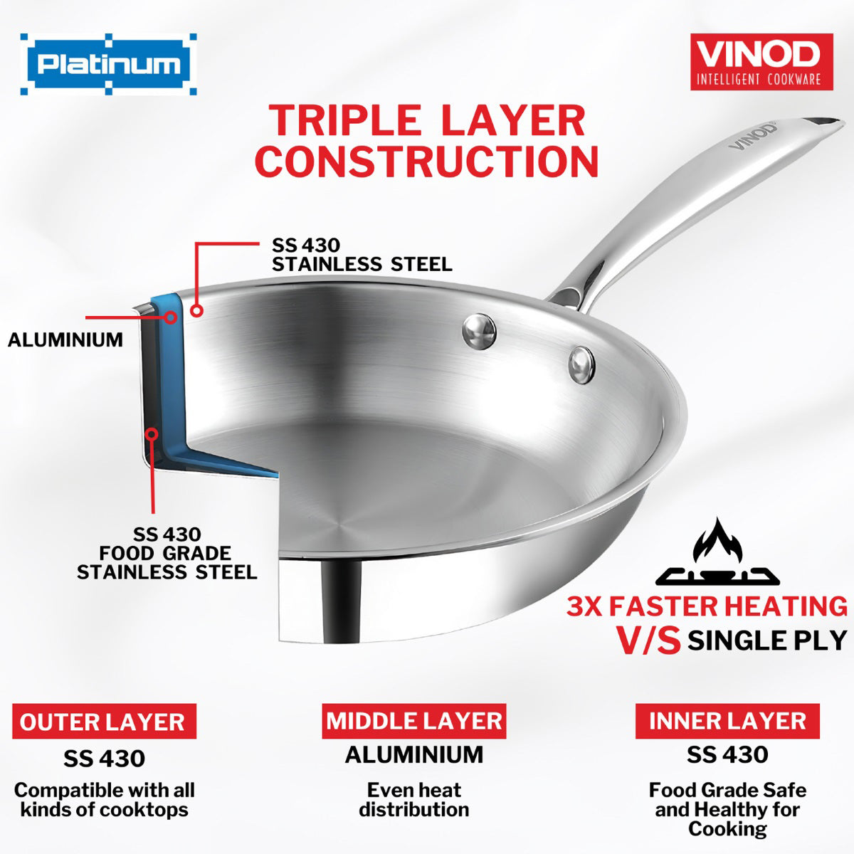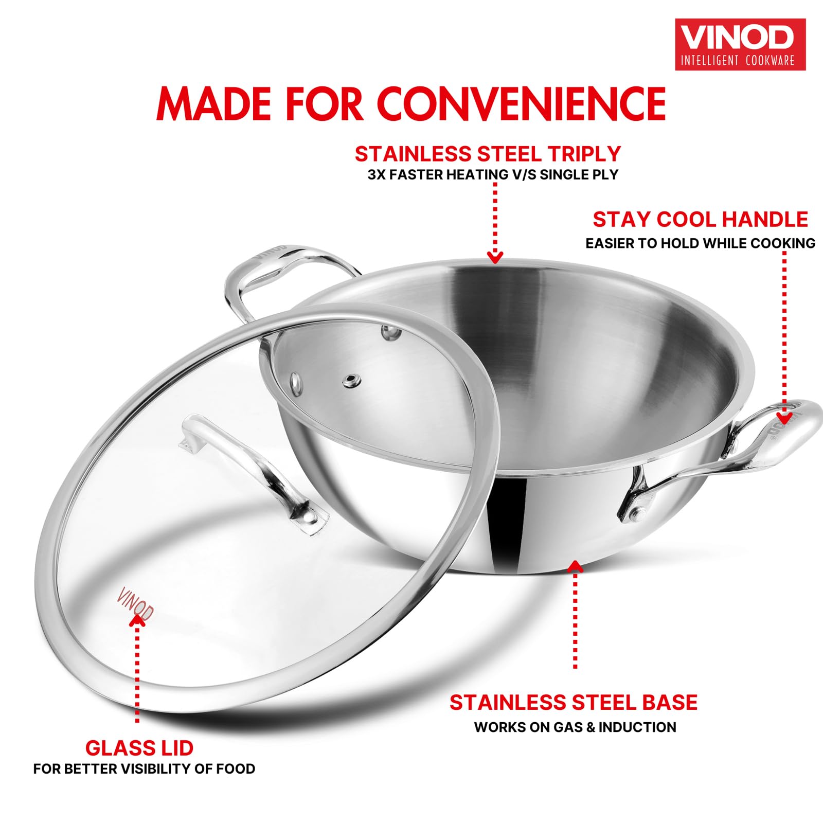 "The Vinod Triply Kadai is a game-changer! Even heating, easy to clean, and beautiful on my stove. Highly recommend!"