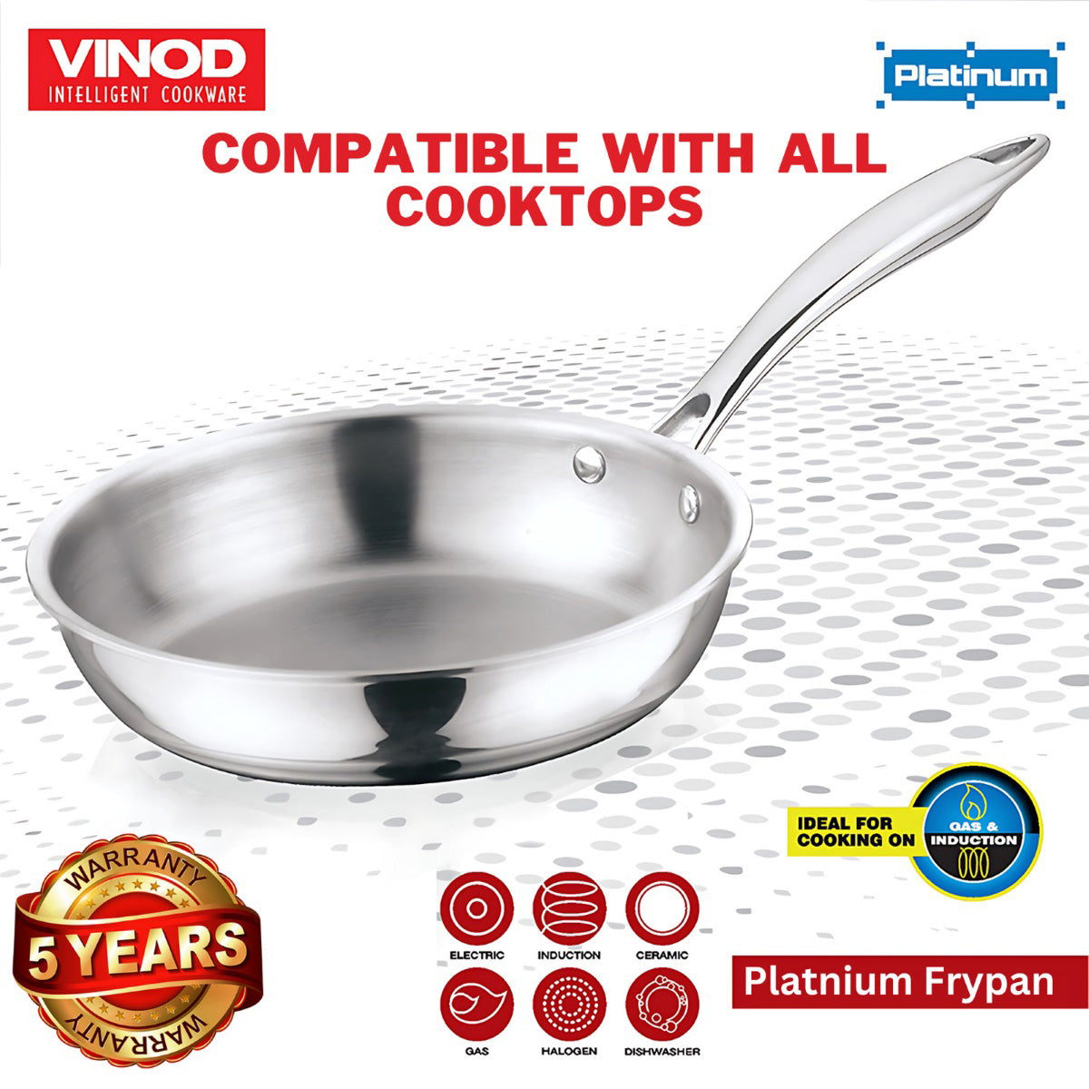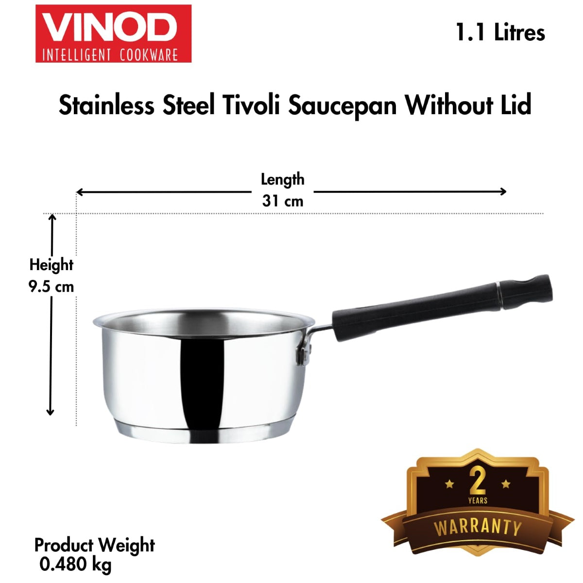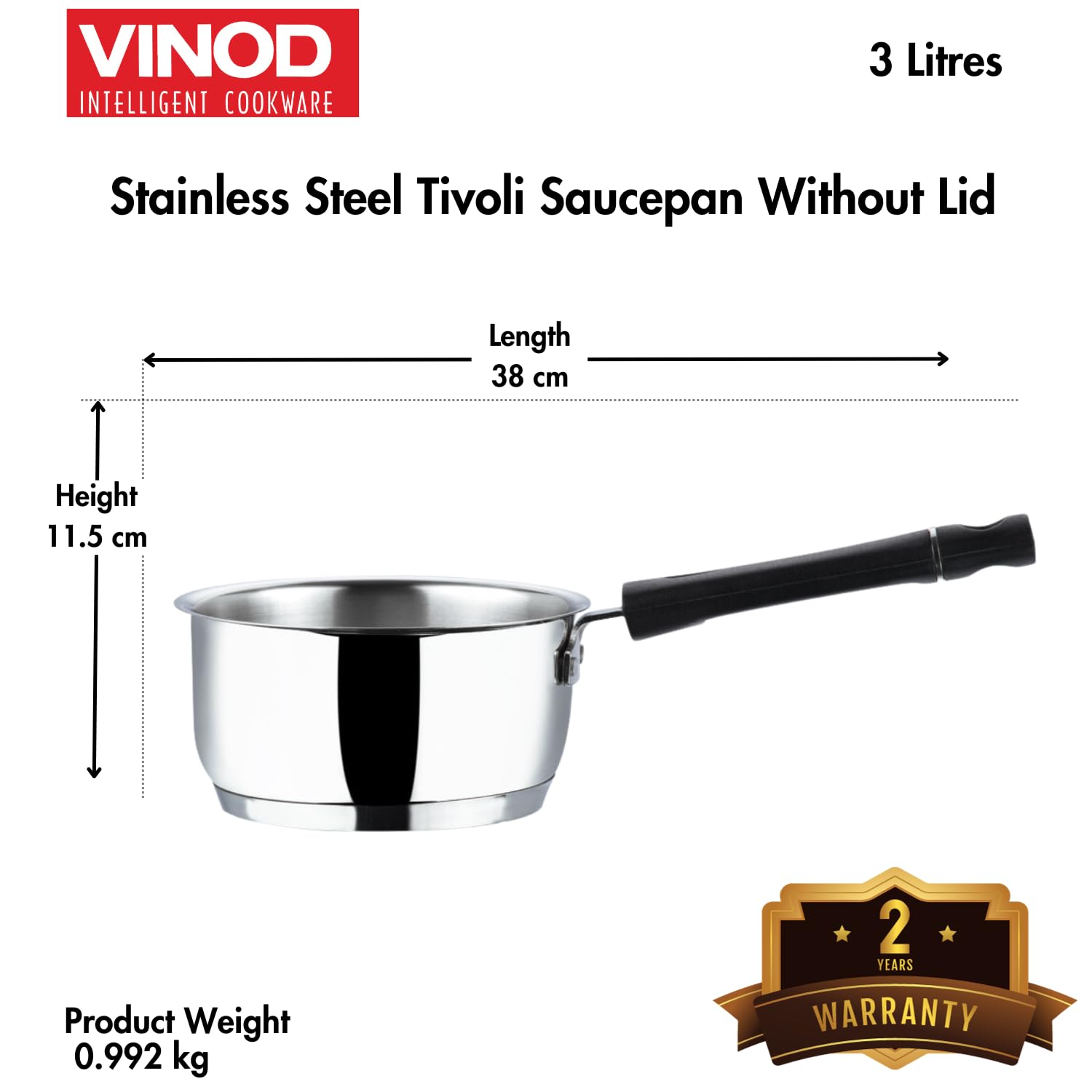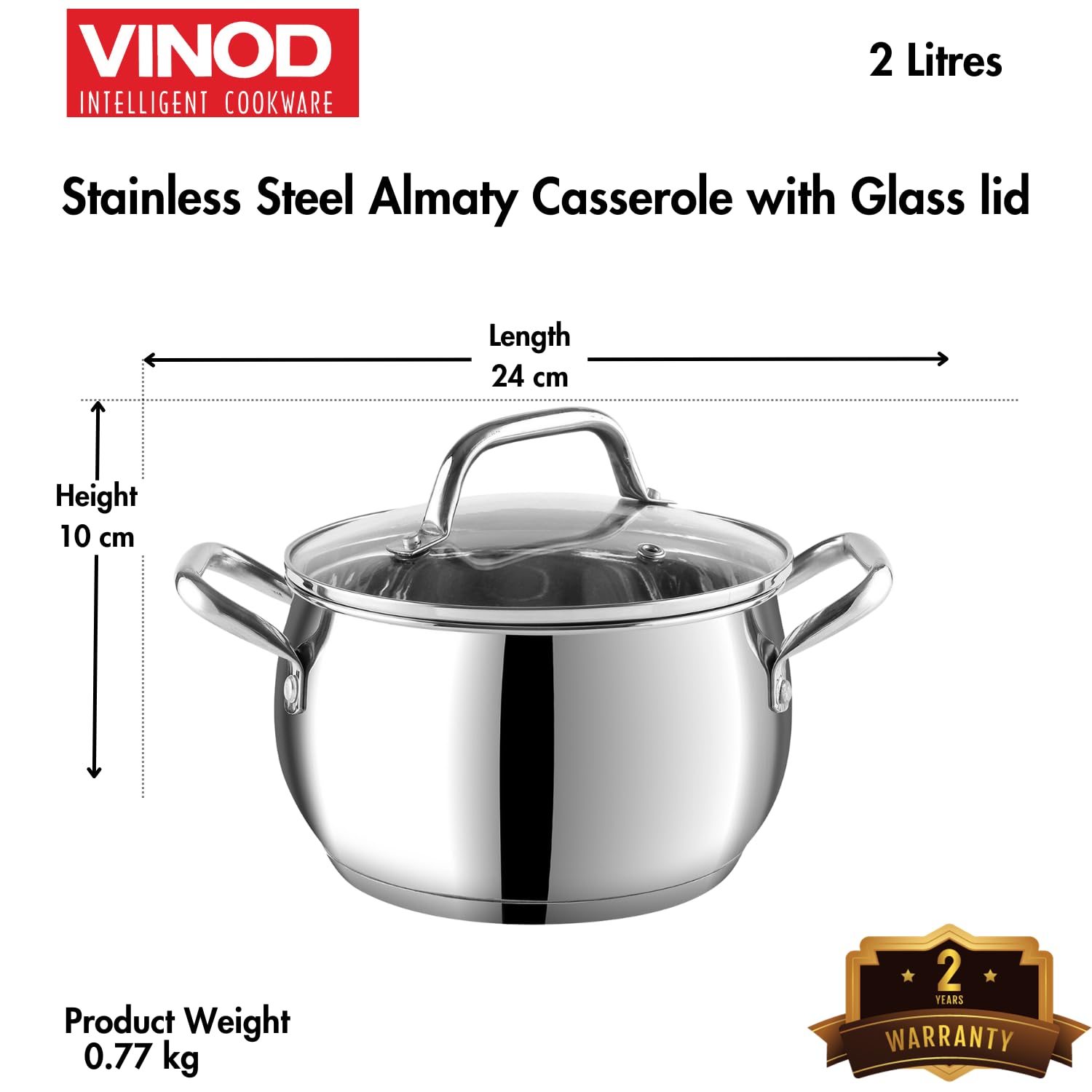All Vinod Cookware products include a 2-year warranty covering manufacturing defects. Warranty claims must be accompanied by a valid proof of purchase.