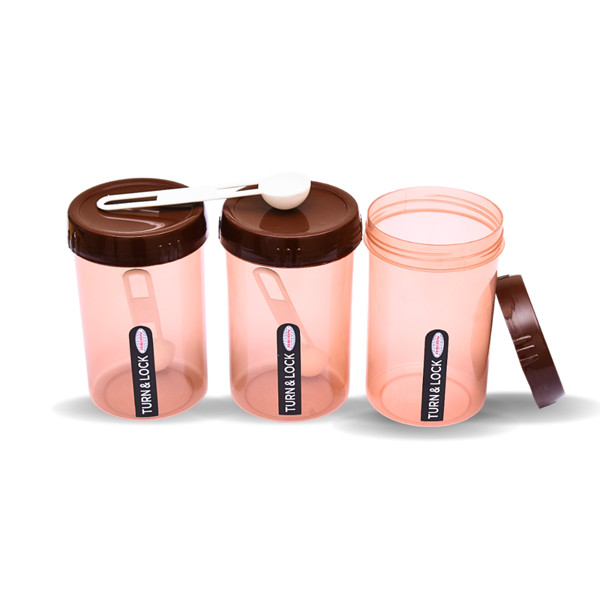 Asian Plastowares Turn & Lock Storage Containers With Spoon - Set of 3(1200 ml)