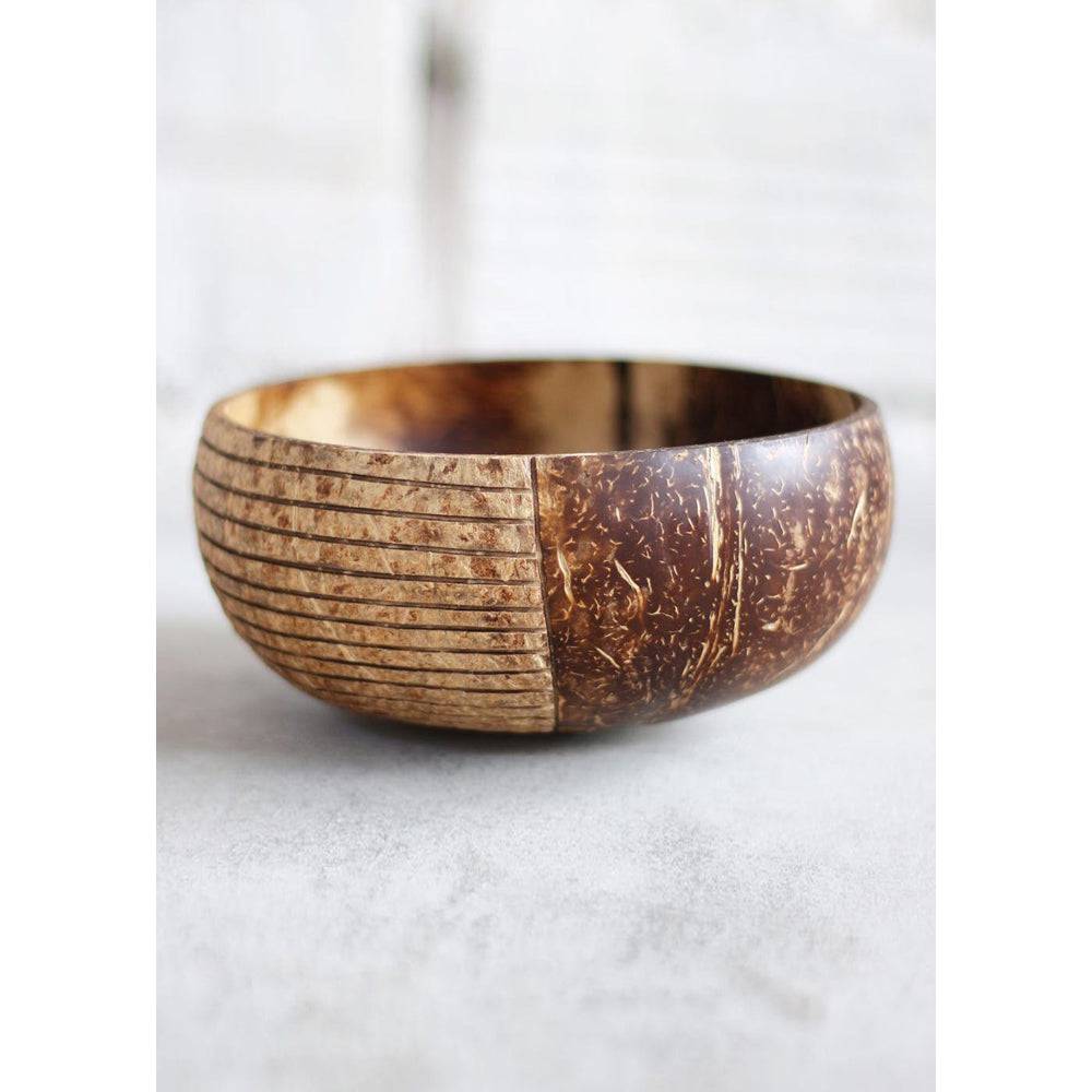 Coconut Hand Carved Bowl With Cutlery - 1 Jumbo Bowl 1 Coconut Wood Spoon 1 Coconut Wood Fork