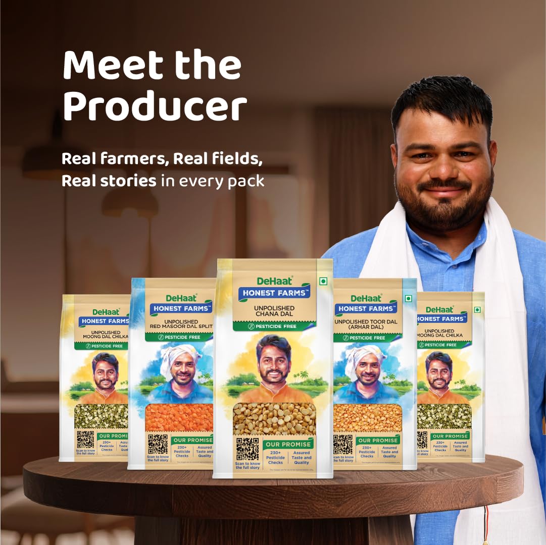 DeHaat Honest Farms Pesticide-Free Unpolished Urid Whole is a premium-quality black gram (urad) dal, sourced directly from dedicated farmers. This whole urad dal is unpolished, retaining its natural nutrients and flavor. It's cultivated without the use of synthetic pesticides, ensuring a clean and healthy product for your meals.