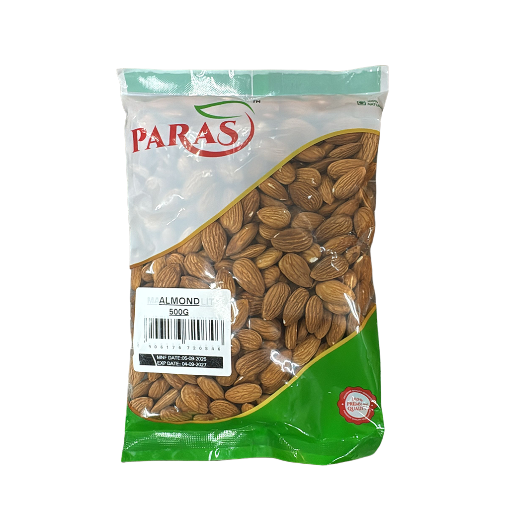 Enjoy a generous serving of nutrition with Paras Premium Grade Whole Almonds – 500 g. These top-quality almonds are carefully selected for size, crunch, and natural flavor. Packed with protein, fiber, vitamin E, and healthy fats, they make a perfect everyday snack or addition to meals, offering both taste and health in every bite.