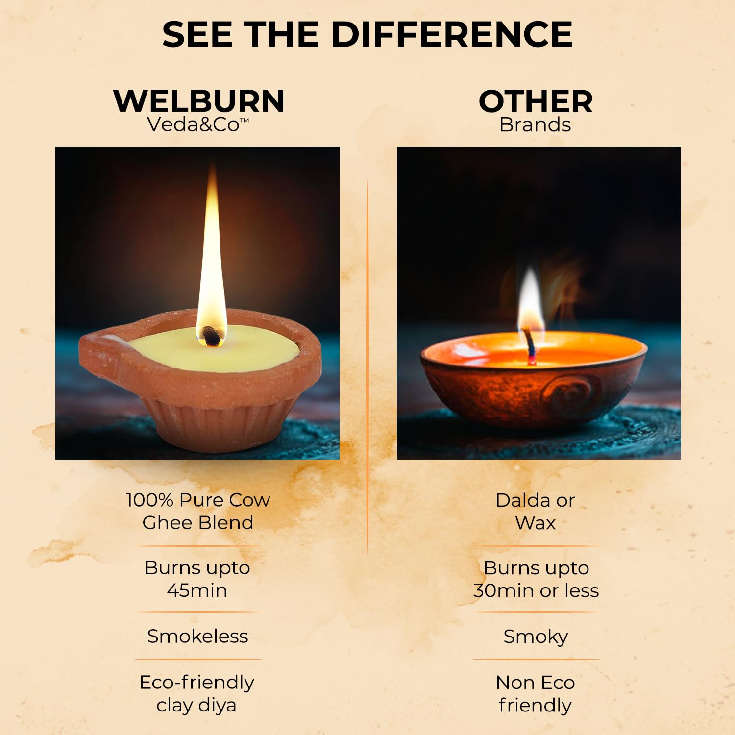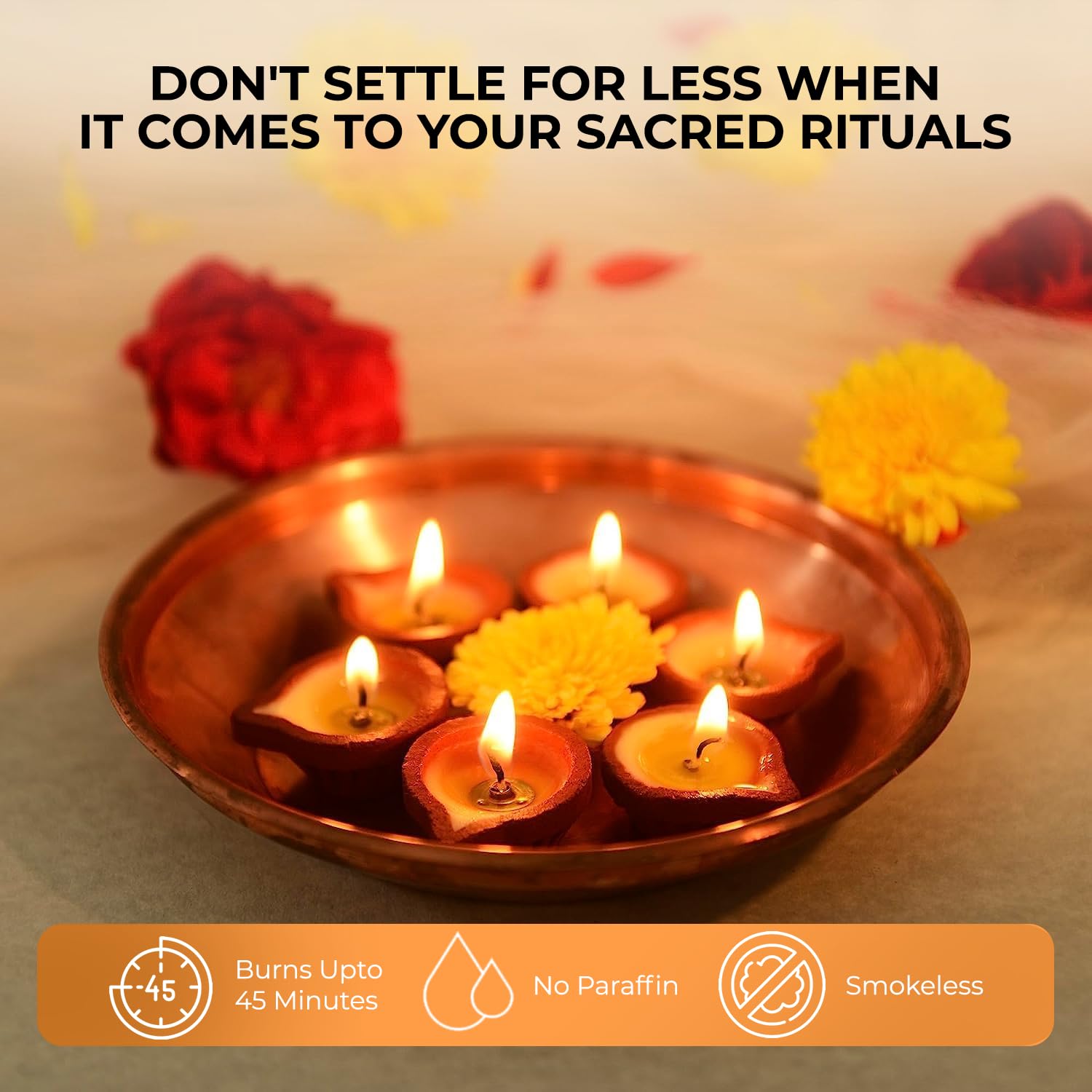 • Traditional Aroma: Mild, natural ghee fragrance enhances spiritual ambiance